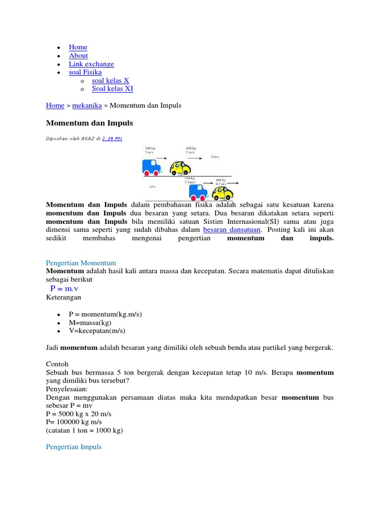 Budak Bius Soal Tentang Impuls Tumbukan Dan Momentum Beserta Pengertian