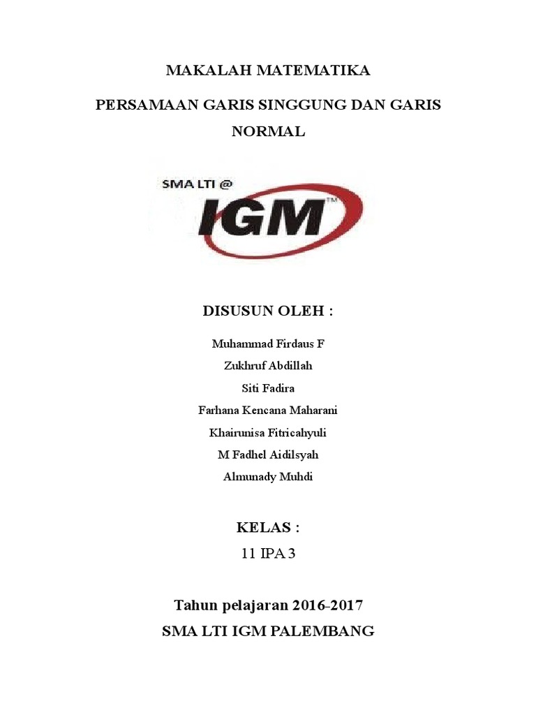 Makalah Matematika Persamaan Garis Singgung Dan Garis Normal