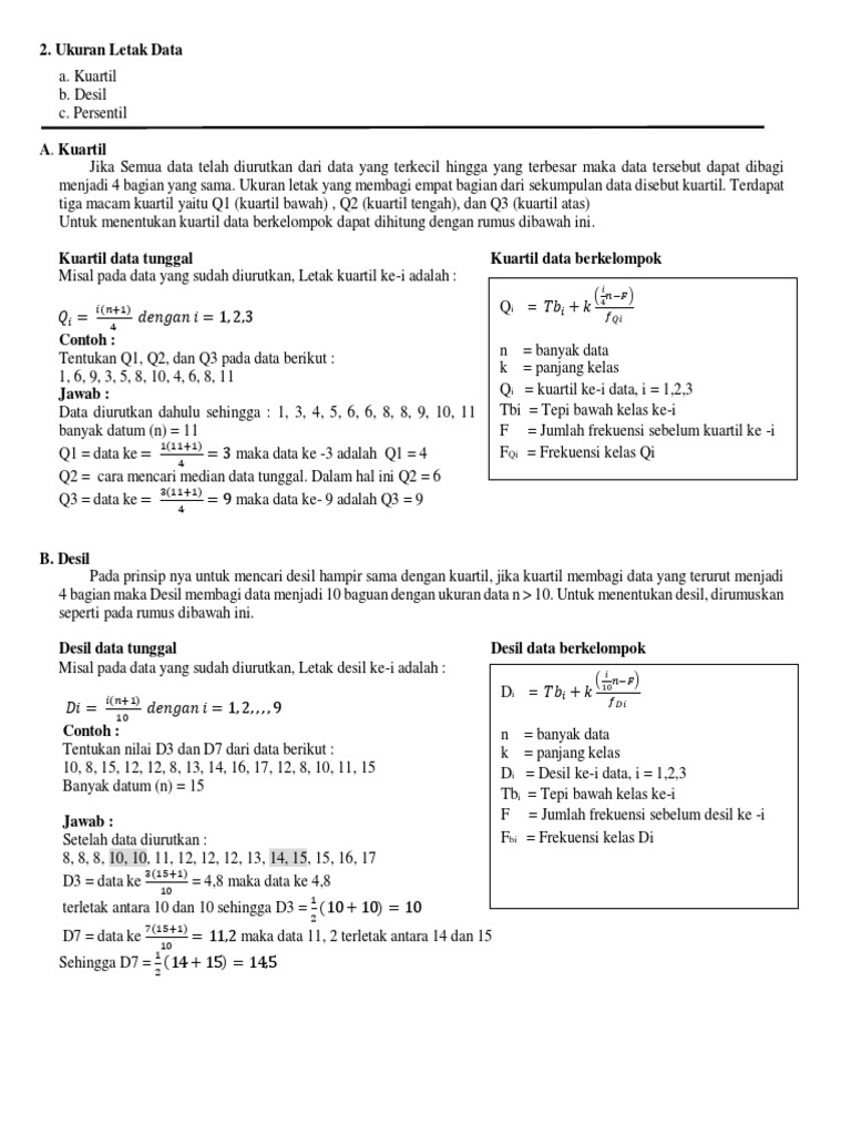 Rumus Kuartil Desil Persentil Simpangan Dan Contoh Soal