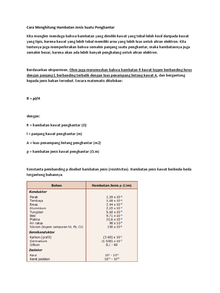 Pengertian Dan Cara Menghitung Hambatan Jenis Suatu Penghantar Beserta Contoh Soal Terlengkap Pelajaran Sekolah Online