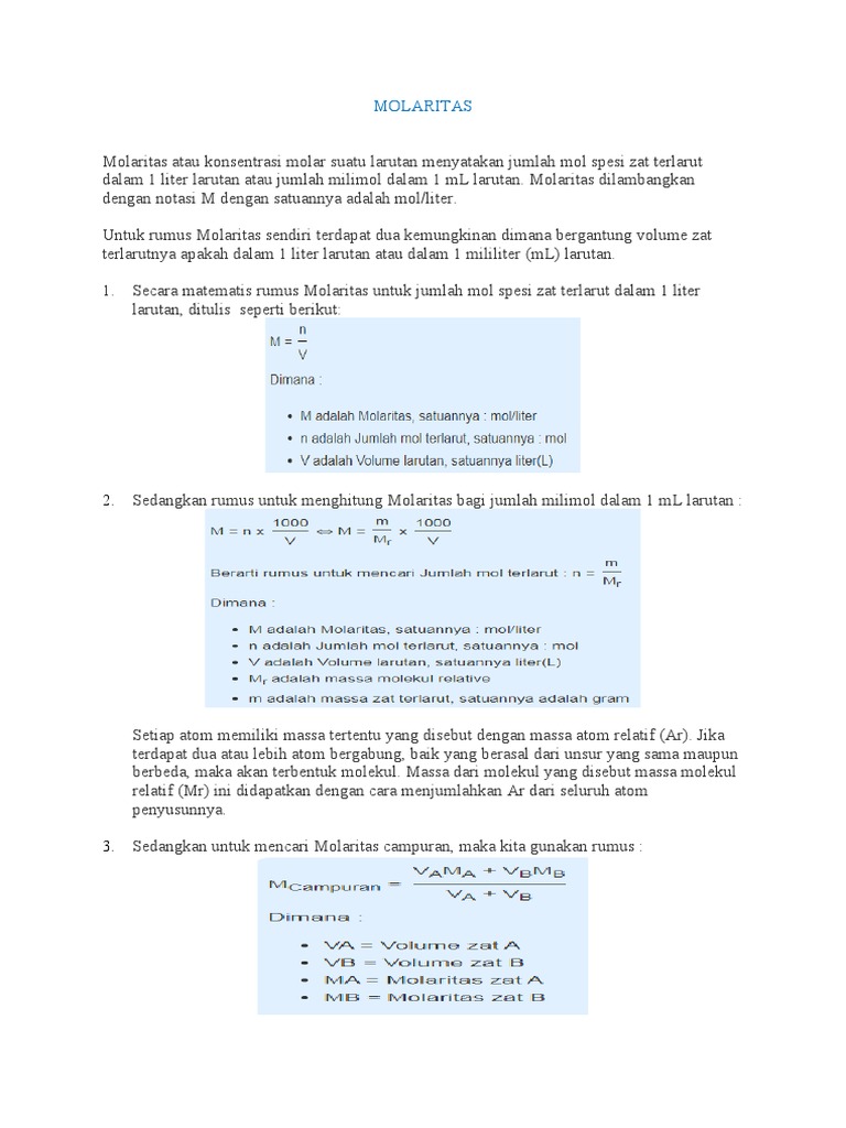 Contoh Soal Molaritas Dan Pembahasannya Untuk Kls 3 Sma Brainly Co Id