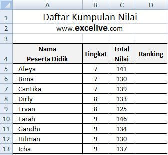 Badruzeus Shava Teknologi Informasi Komunikasi Cara Mudah Menentukan Ranking Kelas Di Microsoft Excel