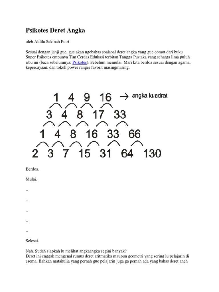 Contoh Soal Dan Materi Pelajaran 9 Contoh Soal Psikotes Deret Angka Dan Jawabannya Pdf