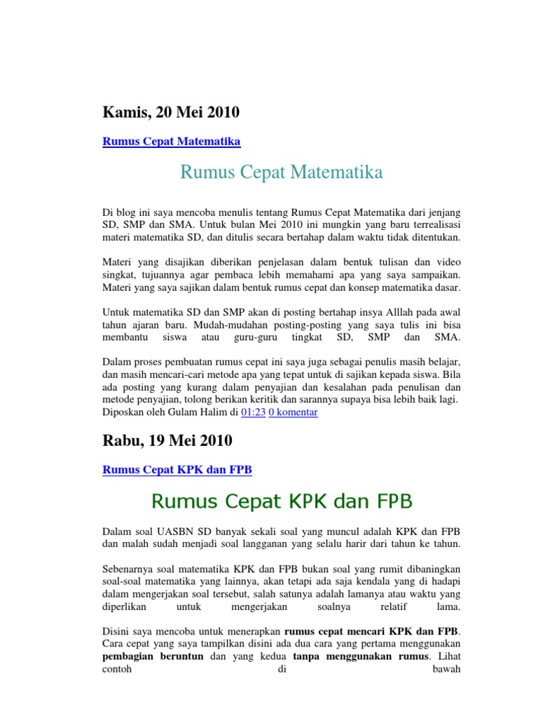 Heboh Cara Mudah Dan Cepat Mengerjakan Soal Matematika Ujian Sd Mi Part 3 Fast Easy Math Trick Youtube