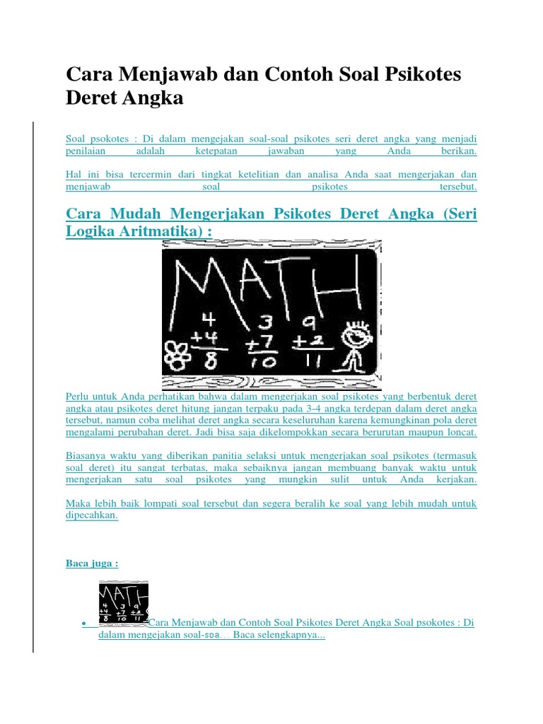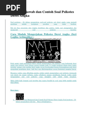 Contoh Soal Dan Materi Pelajaran 9 Contoh Soal Psikotes Deret Angka Dan Jawabannya Pdf