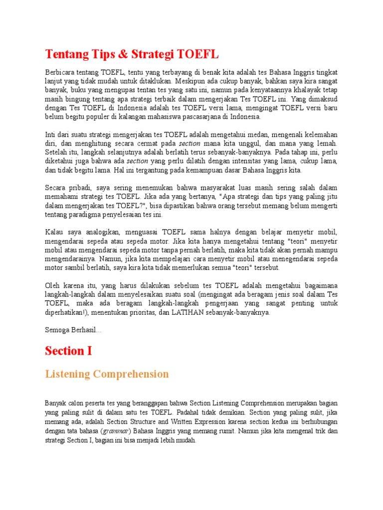 Tips Tes Toefl Cara Mudah Dan Cepat Mengerjakan Toefl Dengan Benar