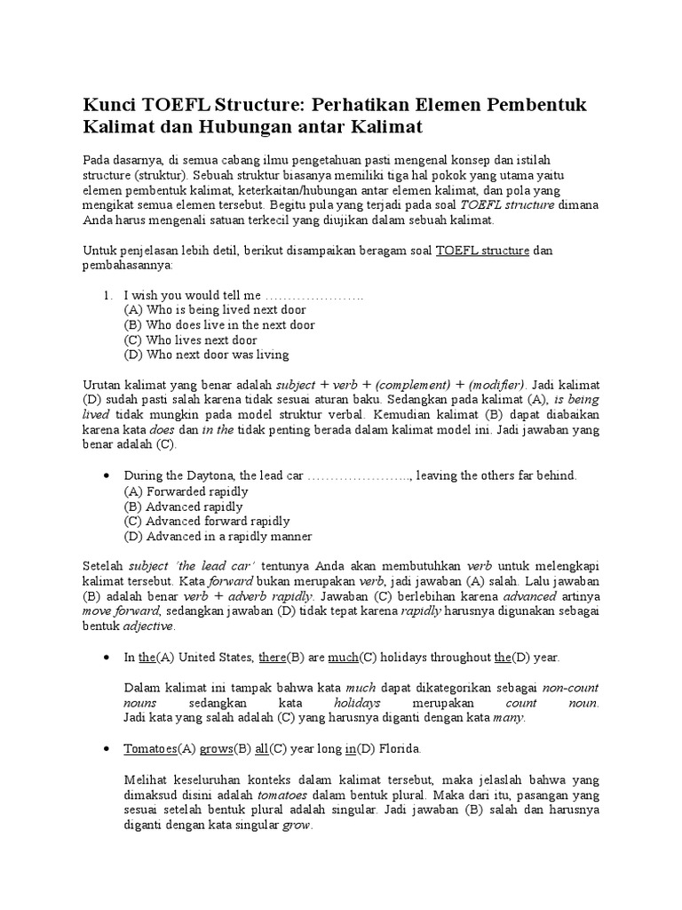 Doc 179120373 Soal Tes Toefl Dan Pembahasan Jawaban Docx Daniel Partahijaya Academia Edu