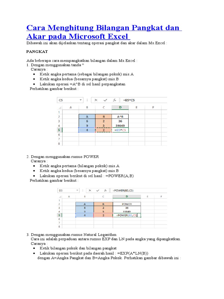 Setelah menghitung pangkat dari sebuah bilangan tentunya ada lawannya dong. Home excel dasar cara menghitung bilangan pangkat dan akar pada microsoft excel cara menghitung bilangan pangkat dan akar pada microsoft excel dibawah ini akan dijelaskan tentang operasi pangkat dan akar dalam msexcel. Pangkat tiga dari sebuah sel.