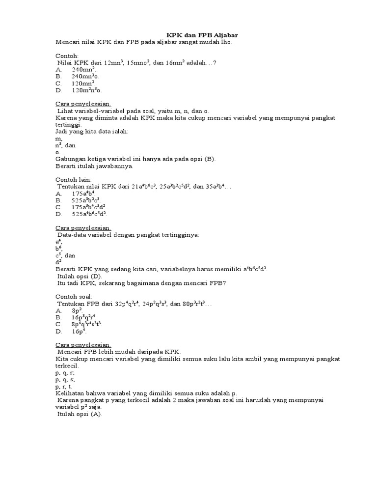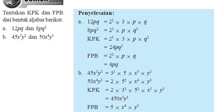 Tentukan Kpk Dan Fpb Dari Sekelompok Bentuk Aljabar Di Bawah Ini A 15p3qr2 Dan 6p2q2 B Brainly Co Id