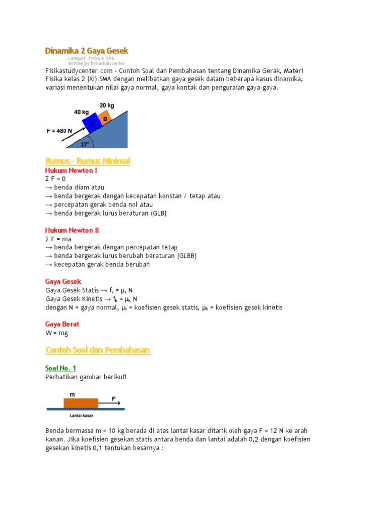 Contoh Soal Rumus Perhitungan Gaya Gesekan Ardra Biz