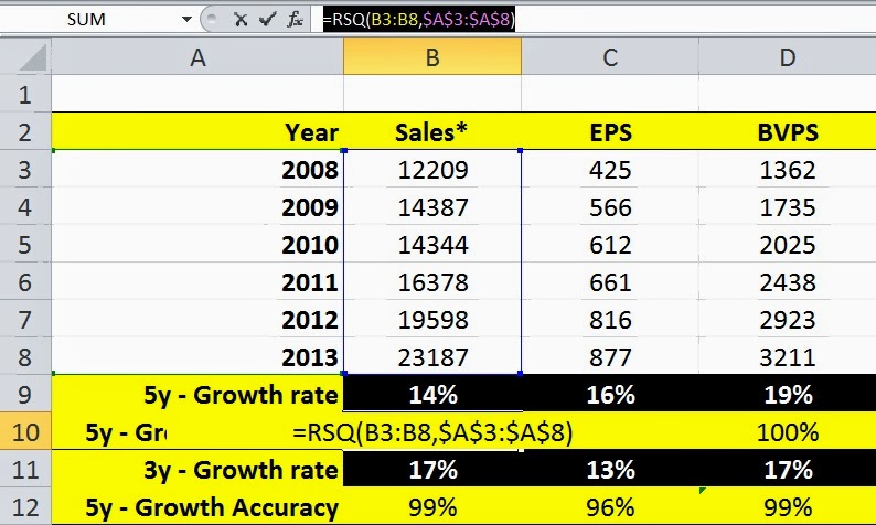 To calculate the average annual growth rate in excel normally we have to calculate the annual growth rates of every year with the formula ending value beginning value beginning value and then average these annual growth rates. Rumus growth adalah salah fungsi statistik pada microsoft office excel yang digunakan untuk menghitung prediksi pertumbuhan eksponensial dengan menggunakan data yang ada. Bisa dari pertumbuhan 5 atau 10 tahun sebelumnya.