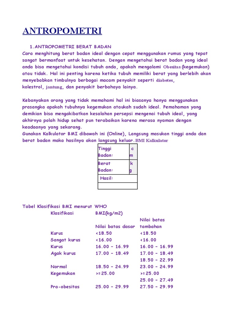 Cara Menghitung Berat Badan Ideal Dan Kalkulator Berat Badan Ideal Online Cantik Menawan