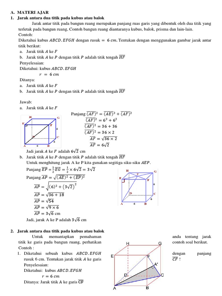 Pada Kubus Abcd Efgh Dengan Panjang Rusuk 6 Cm Jarak Titik A Ke Garis Ce Adalah Brainly Co Id
