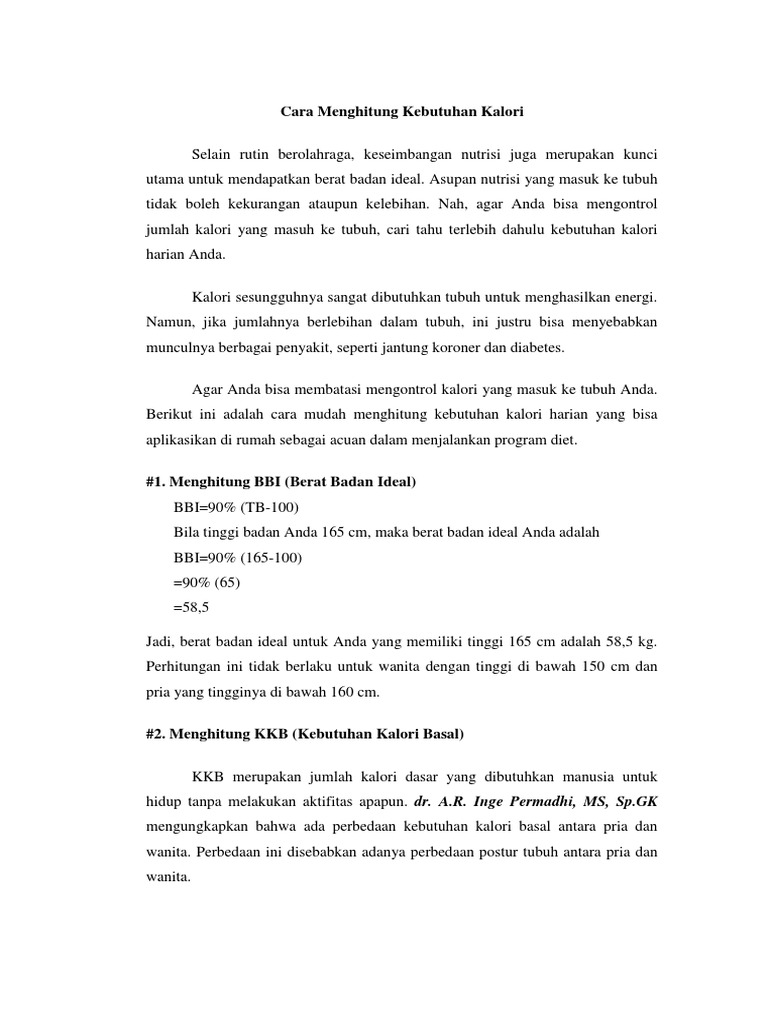 Menghitung Kebutuhan Kalori Harian Dengan Kalkulator Kalori Referensi Cerdas Diet Rendah Kalori