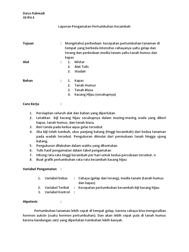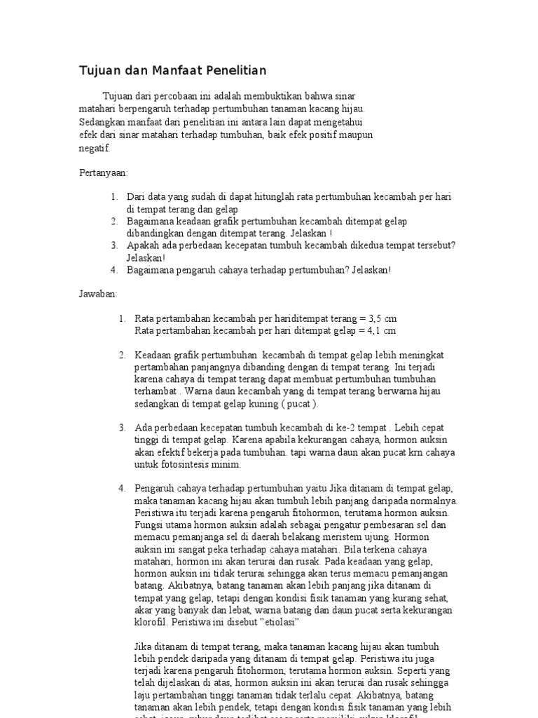 Laporan Praktikum Pengaruh Intensitas Cahaya Terhadap Kecepatan Tumbuh Kecambah Kacang Hijau Pdf Free Download