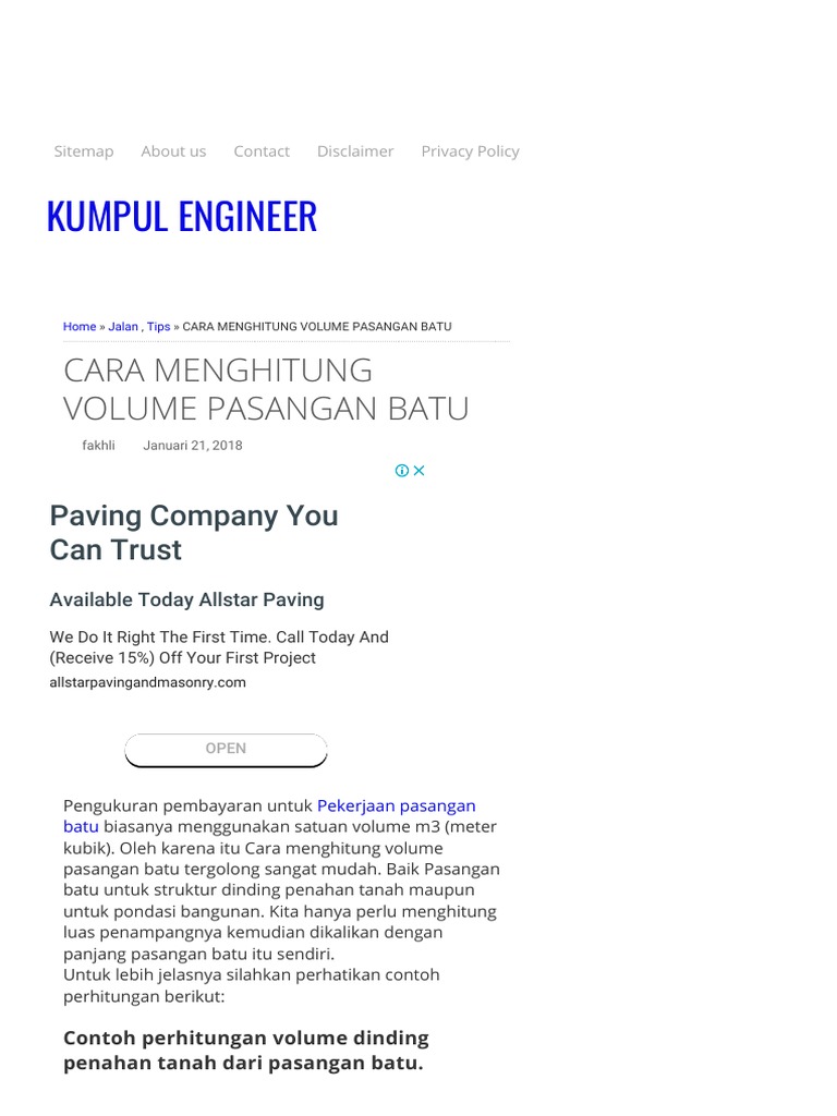 Cara Menghitung Kebutuhan Batu Kali Untuk Pekerjaan Pasangan Batu Kumpul Engineer