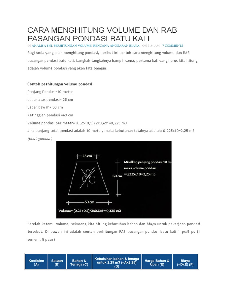 Cara Menghitung Volume Material Pondasi Batu Kali Materi Teknik Sipil Insinyur Go Blog