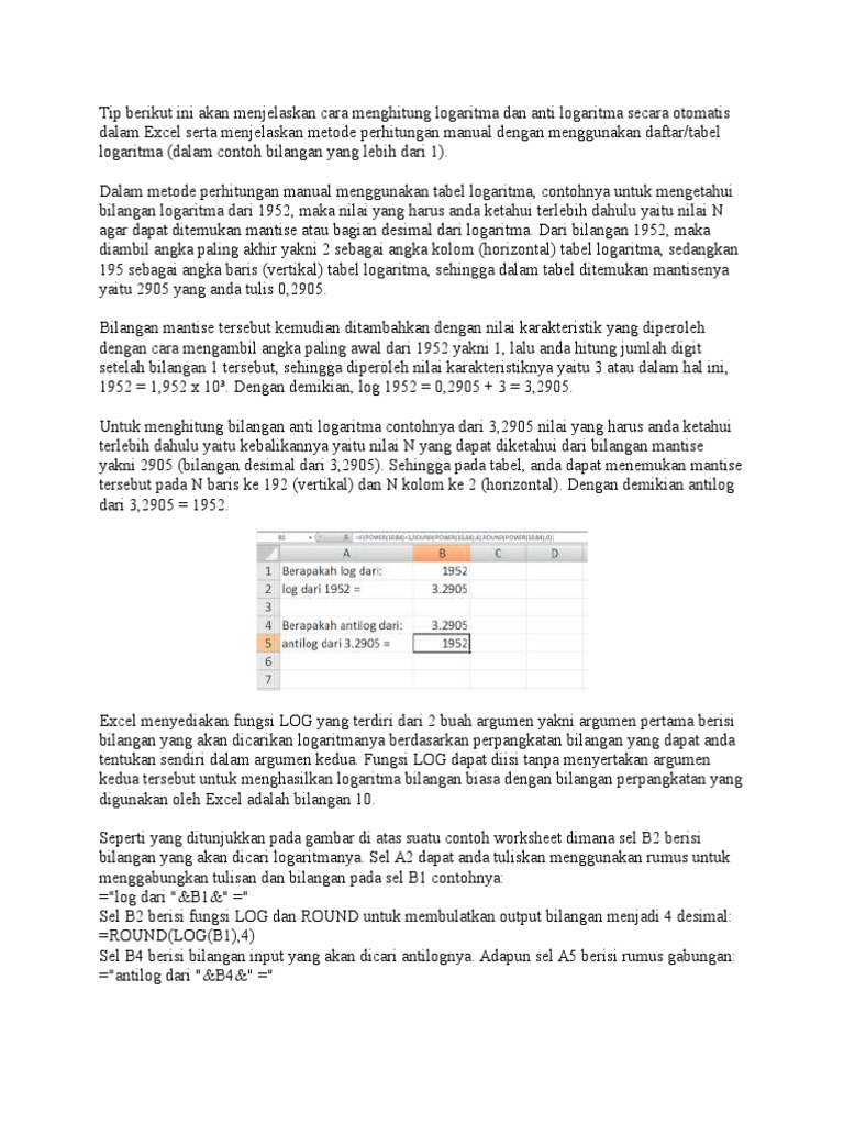 Tip Berikut Ini Akan Menjelaskan Cara Menghitung Logaritma Dan Anti Logaritma Secara Otomatis Dalam Excel Serta Menjelaskan Metode Perhitungan Manual Dengan Menggunakan Daftar
