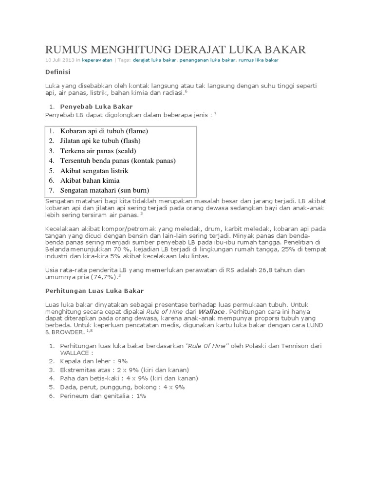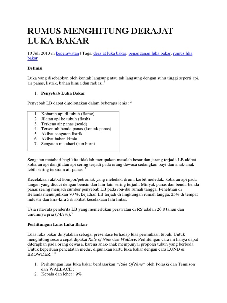 Rumus Menghitung Derajat Luka