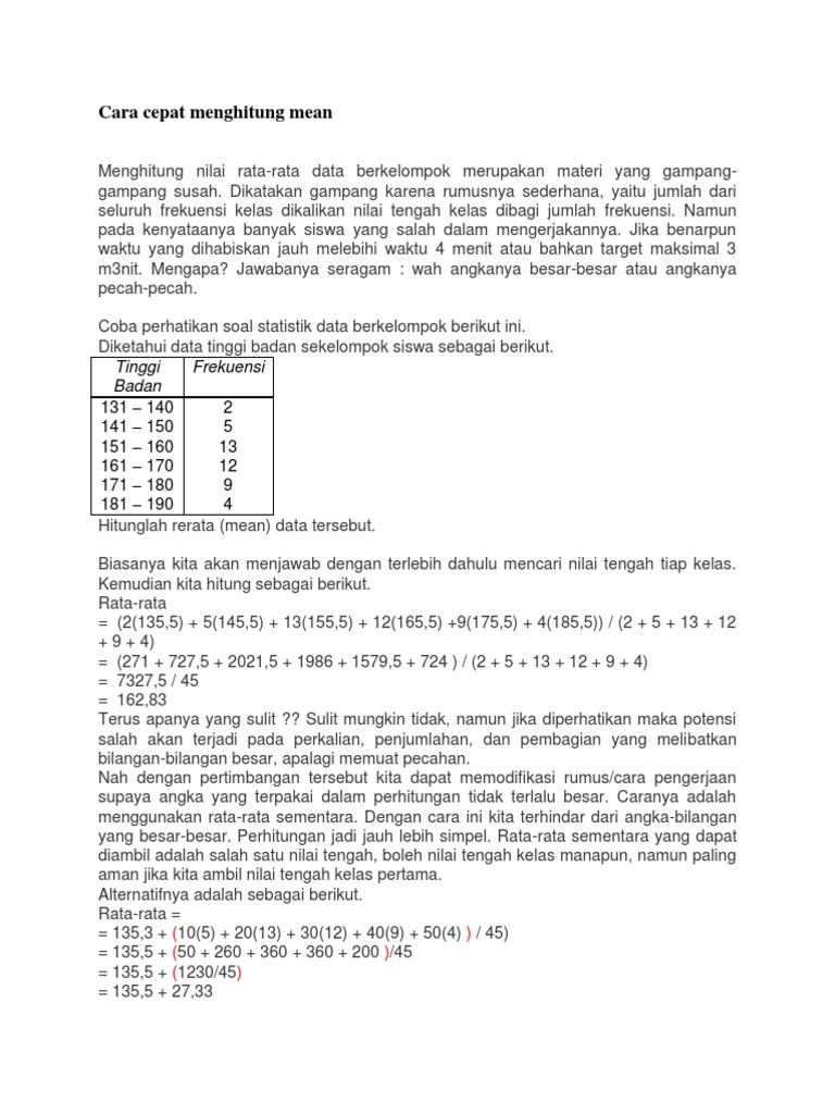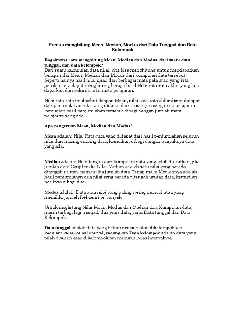Pengertian Contoh Soal Mean Median Modus Kuartil Dan Desil Rumus Cara Menghitung Rataan Hitung Sementara Data Ukuran Statistik Deskriptif Jawaban Matematika