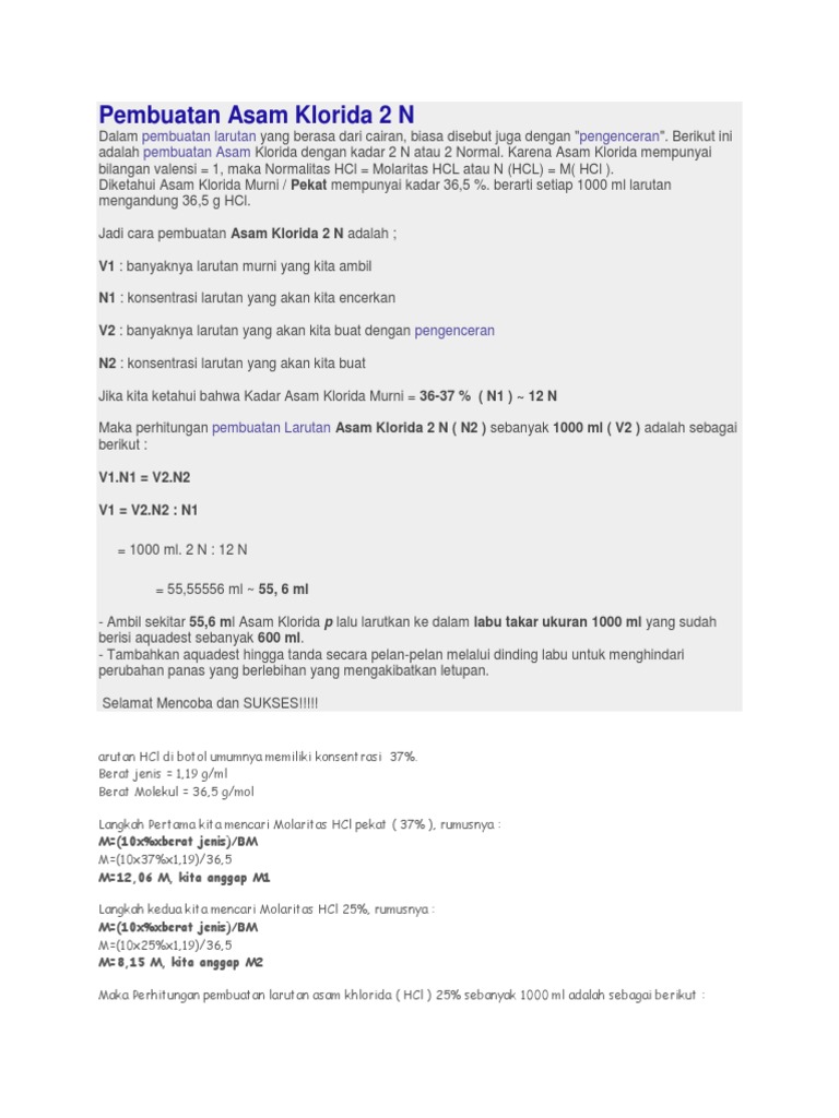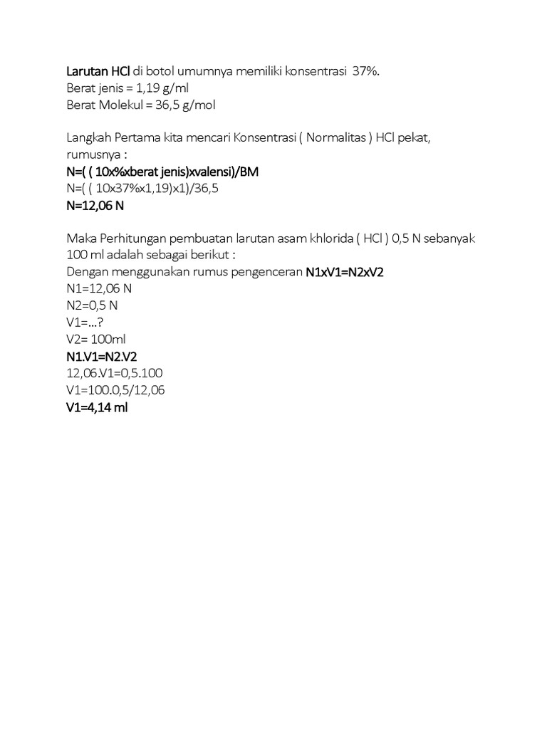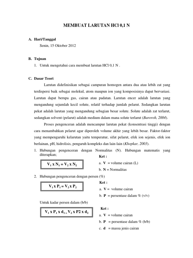 Membuat Larutan Hcl 0 1 N Docx