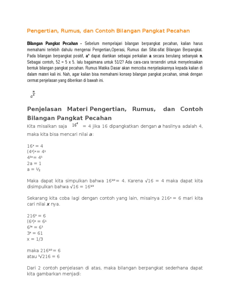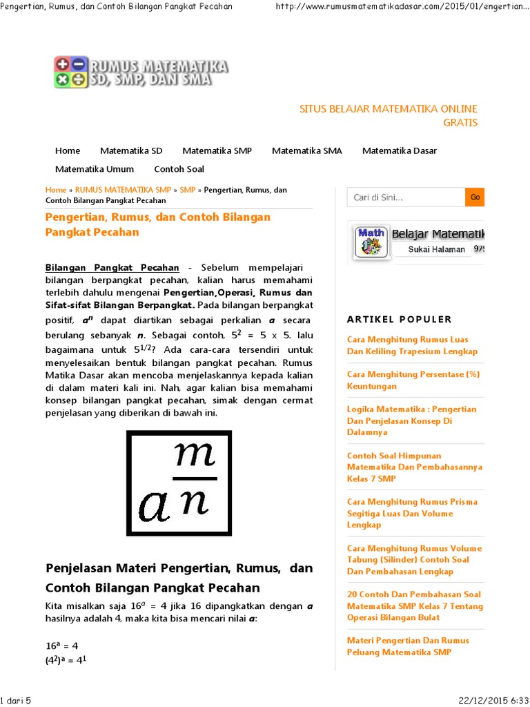 Materi Matematika Smp Kelas Ix Bilangan Berpangkat Dan Bentuk Akar Bagian 2 Duniamatematika Com