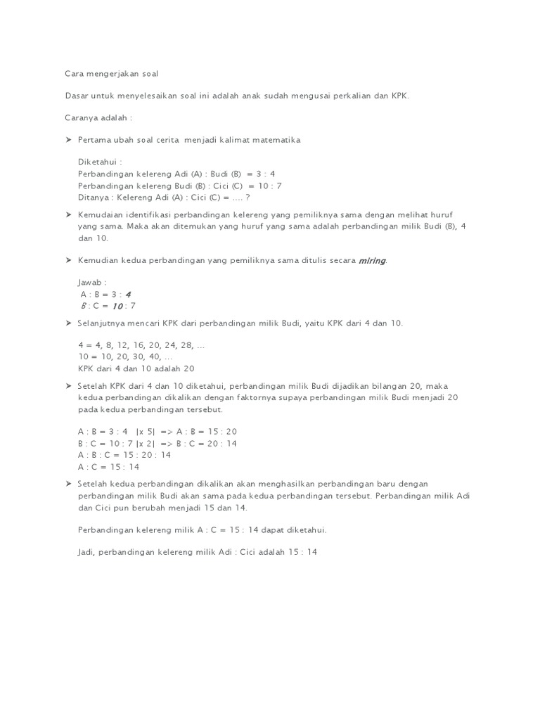 1 Contoh Soal Perbandingan Jika Diketahui Salah Satu Saja Solusi Matematika
