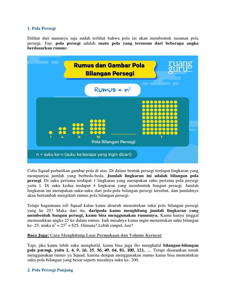 Pada Pola Bilangan Persegi Yg Disajikan Dengan Susunan Noktah Bulatan Banyak Noktah Pada Suku Brainly Co Id