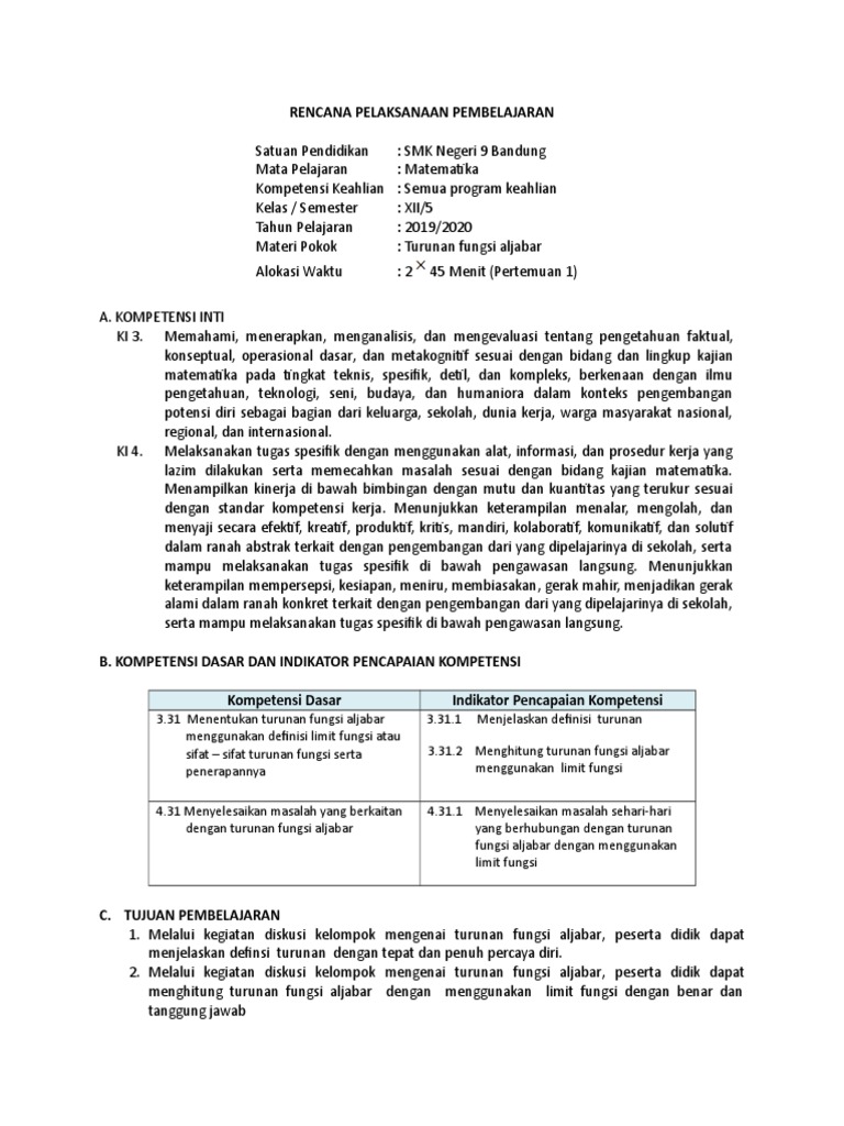 Matematika Turunan Fungsi Menentukan Turunan Fungsi Aljabar Dan Trigonometri Dengan Menggunakan Sifat Sifat Turunan 5 Menentukan Turunan Fungsi Komposisi Dengan Aturan Rantai 6 Pdf Document