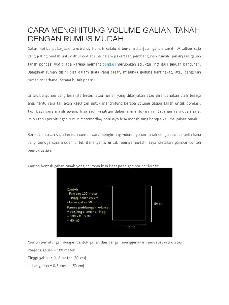 Cara menghitung volume galian tanah dengan rumus mudah. V1 volume pasangan didnding bata merah 15 pada bangunan. Volume pondasi 1 x 052 x 2 x 2 1 m3.