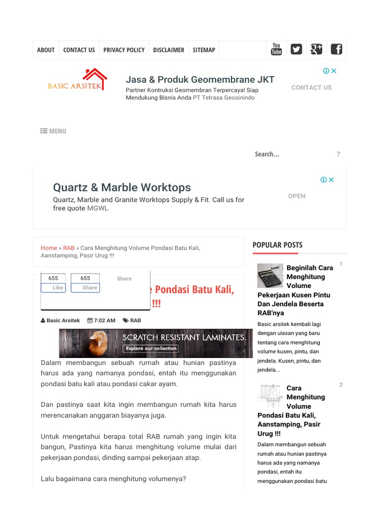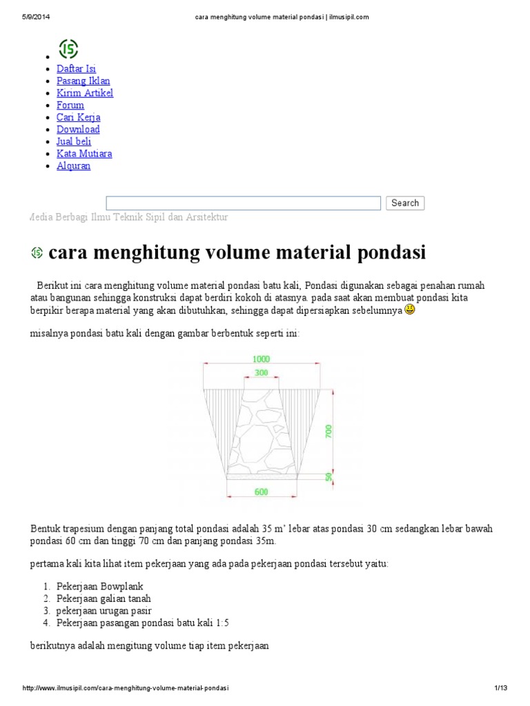 Ide Bangunan Cara Menghitung Volume Dan Rab Pasangan Pondasi Batu Kali
