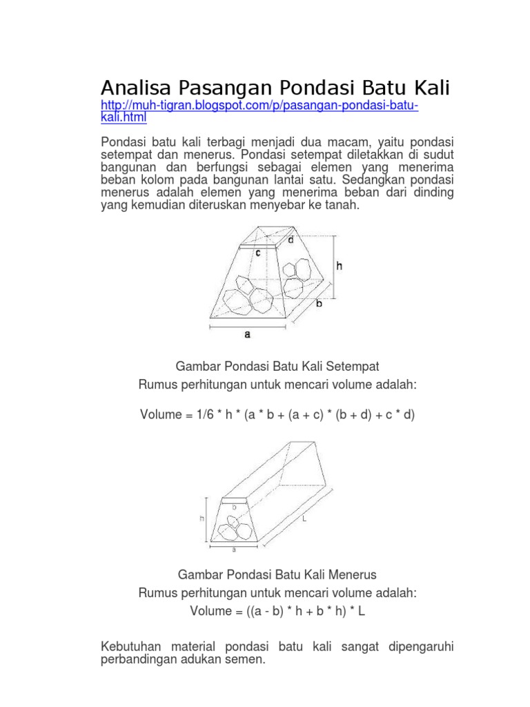 Cara Praktis Menghitung Volume Material Pondasi Batu Belah Untuk Rumah Tinggal Home Design And Ideas
