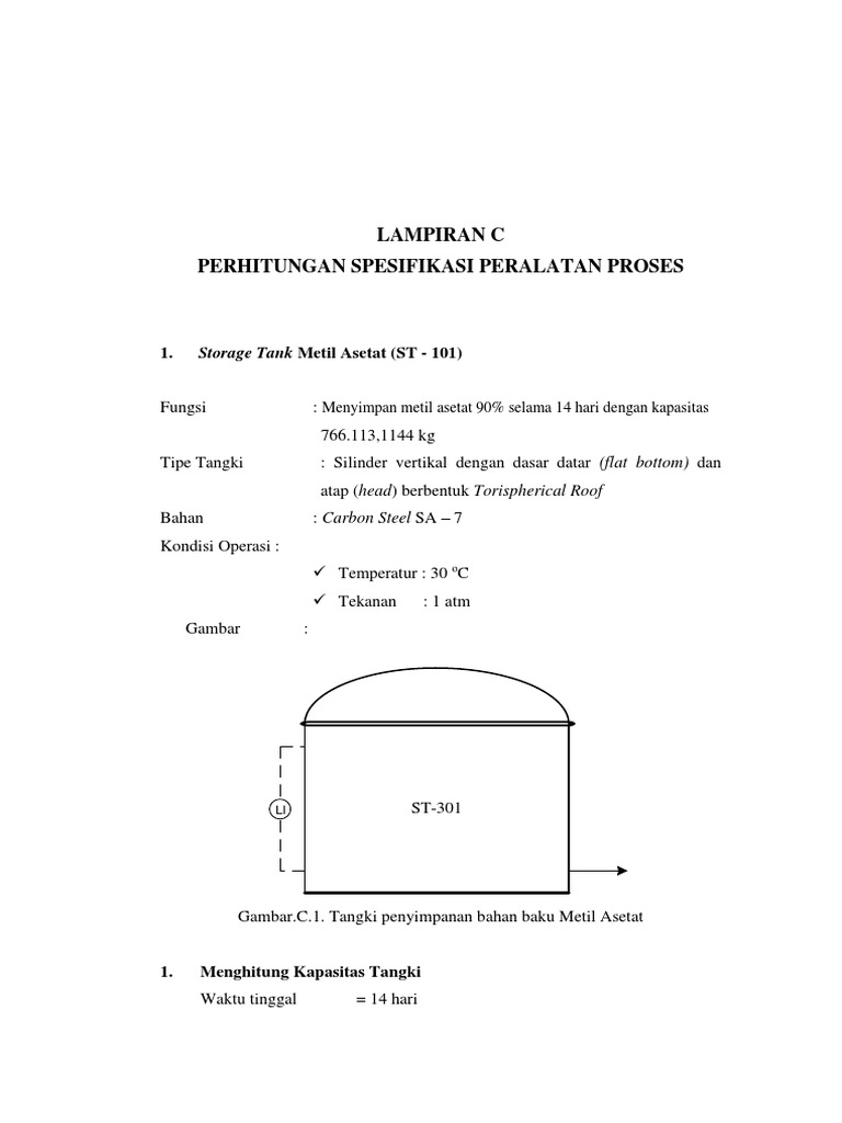Process Engineer Analisa Volume Partial Untuk Tangki Penyimpan Bagian 2