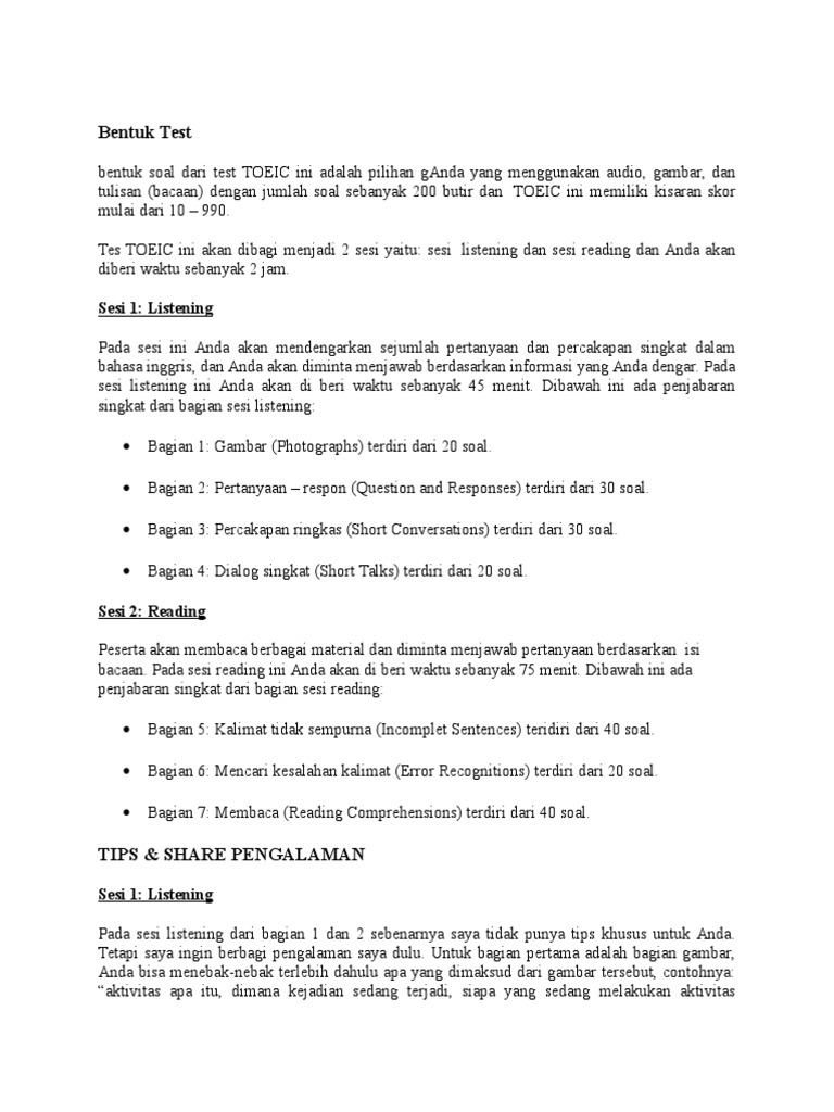 Contoh Soal Tes Toeic Dan Jawabannya Pdf Fasrprofile