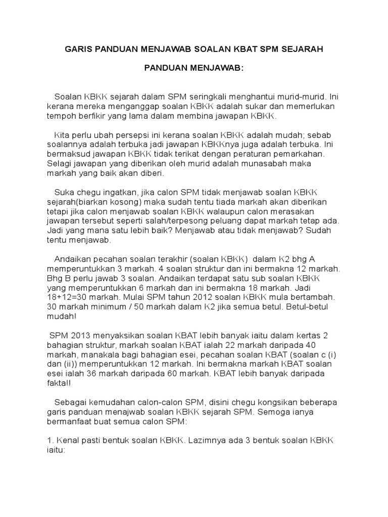 Spm Sejarah Kertas 2 3 Teknik Jawab Soalan Kbkk Kbat Nilai Fakta