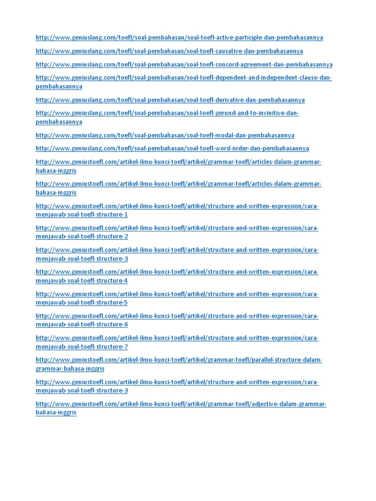 Contoh Soal Toefl Structure Lengkap Dengan Kunci Jawaban Belajar Bahasa Inggris Online Gratis
