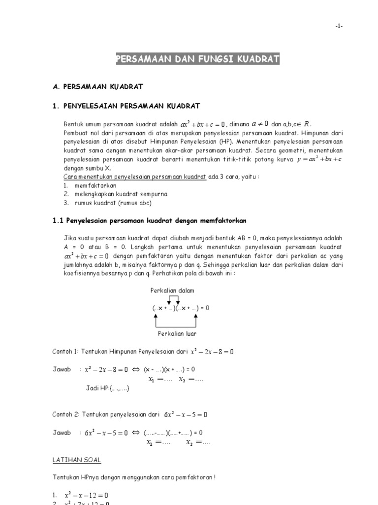 Menyelesaikan Persamaan Kuadrat Dan Jenisnya Ilmu Hitung