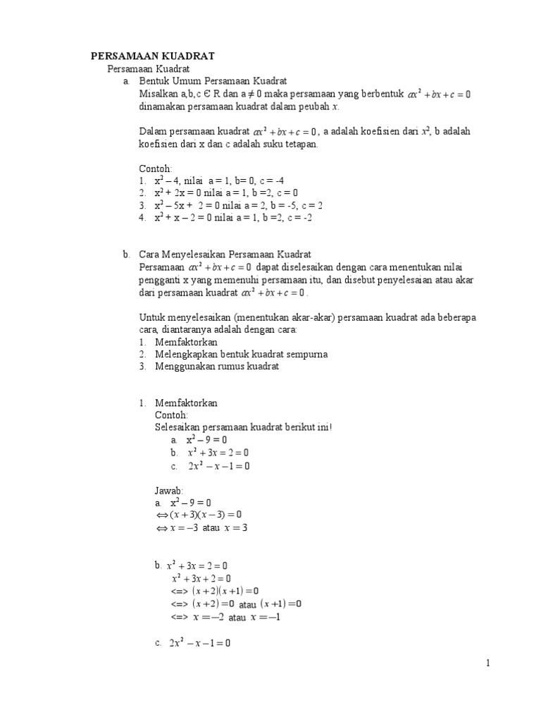 Persamaan Kuadrat Matematika Kelas 9 Quipper Blog
