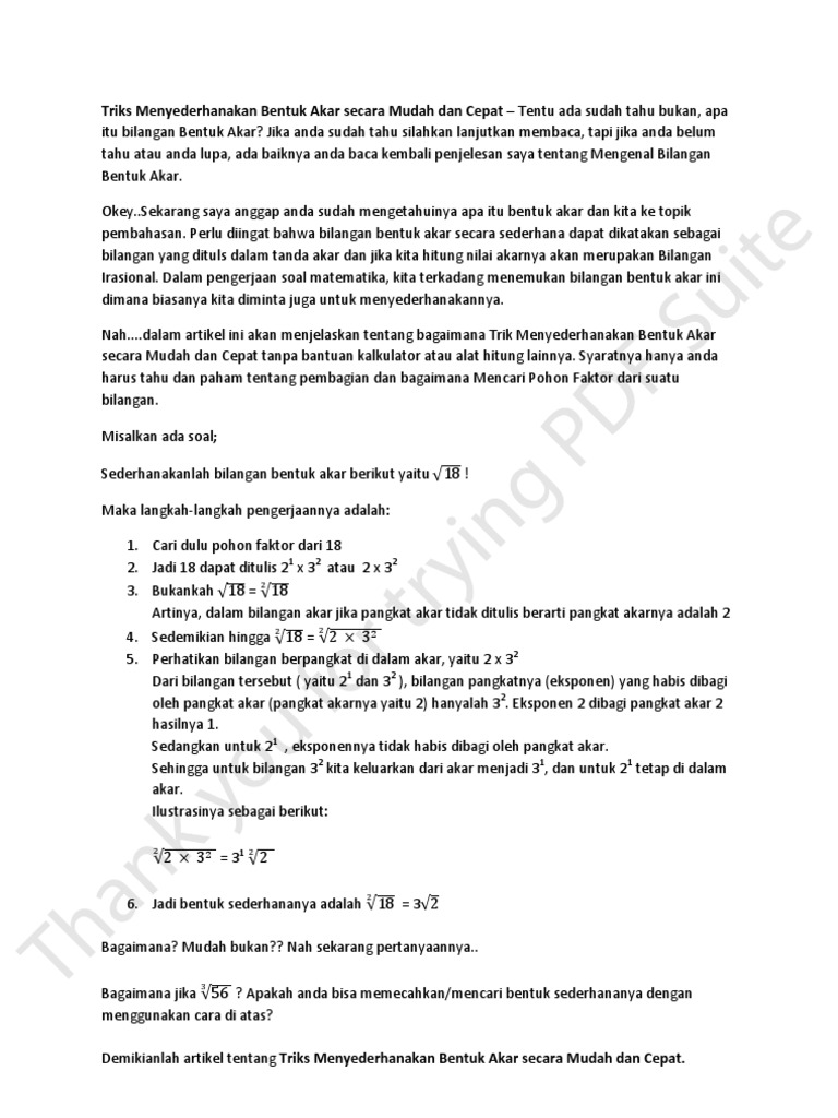 Triks Menyederhanakan Bentuk Akar Secara Mudah Dan Cepat