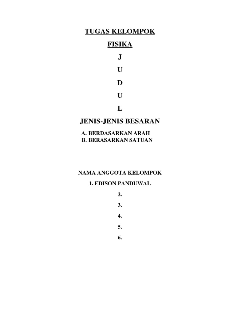 Tugas Kelompok Fisika J U D U L Jenis Jenis Besaran A Berdasarkan Arah B Berasarkan Satuan