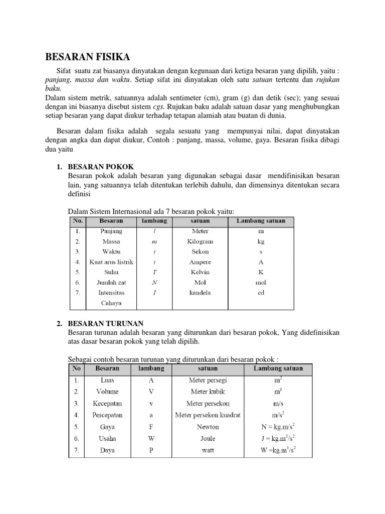 Satuan Internasional Pengertian Besaran Pokok Tabel Berat