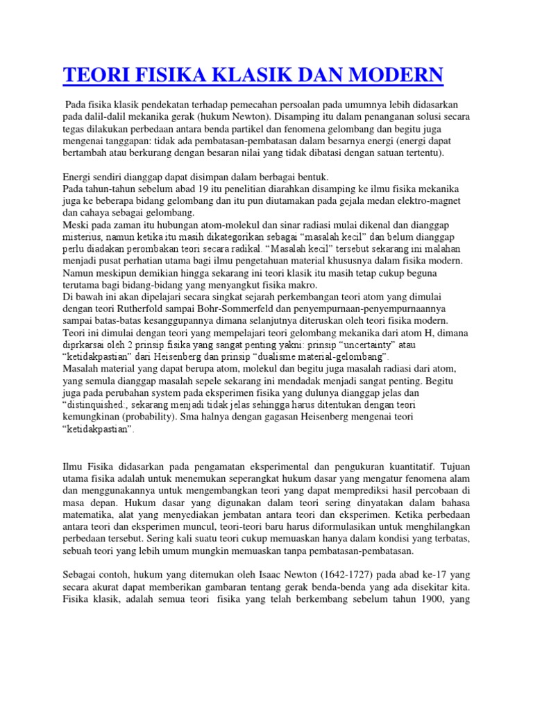 Cabang Ilmu Fisika Pengertian Sejarah Sifat Manfaat Contoh