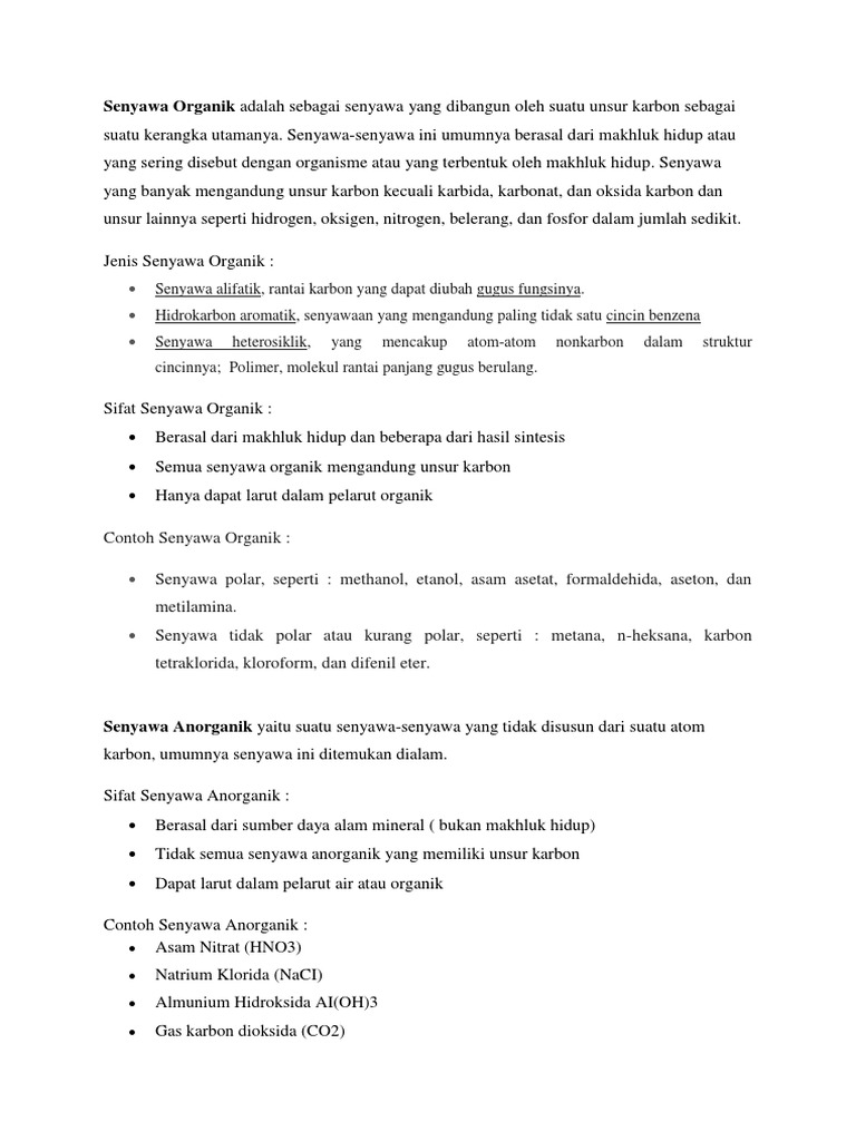 Contoh Senyawa Organik Dan Anorganik Minimal 10 Serta Nama Unsur Penyusunnya Brainly Co Id