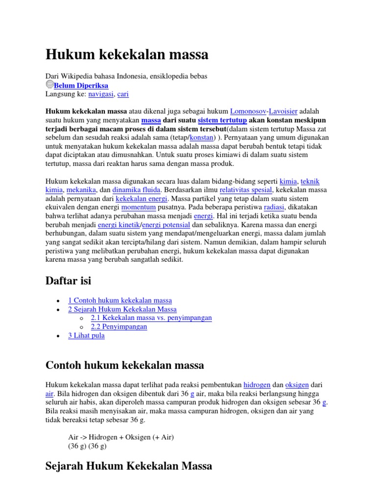 A Hukum Kekekalan Massa Hukum Lavoisier Pernahkah Anda Memperhatikan Sepotong Besi Yang Dibiarkan Di Udara Terbuka Dan Pada Suatu Waktu Kita Akan Menemukan Bahwa Besi Itu Telah Berubah Menjadi Karat Besi