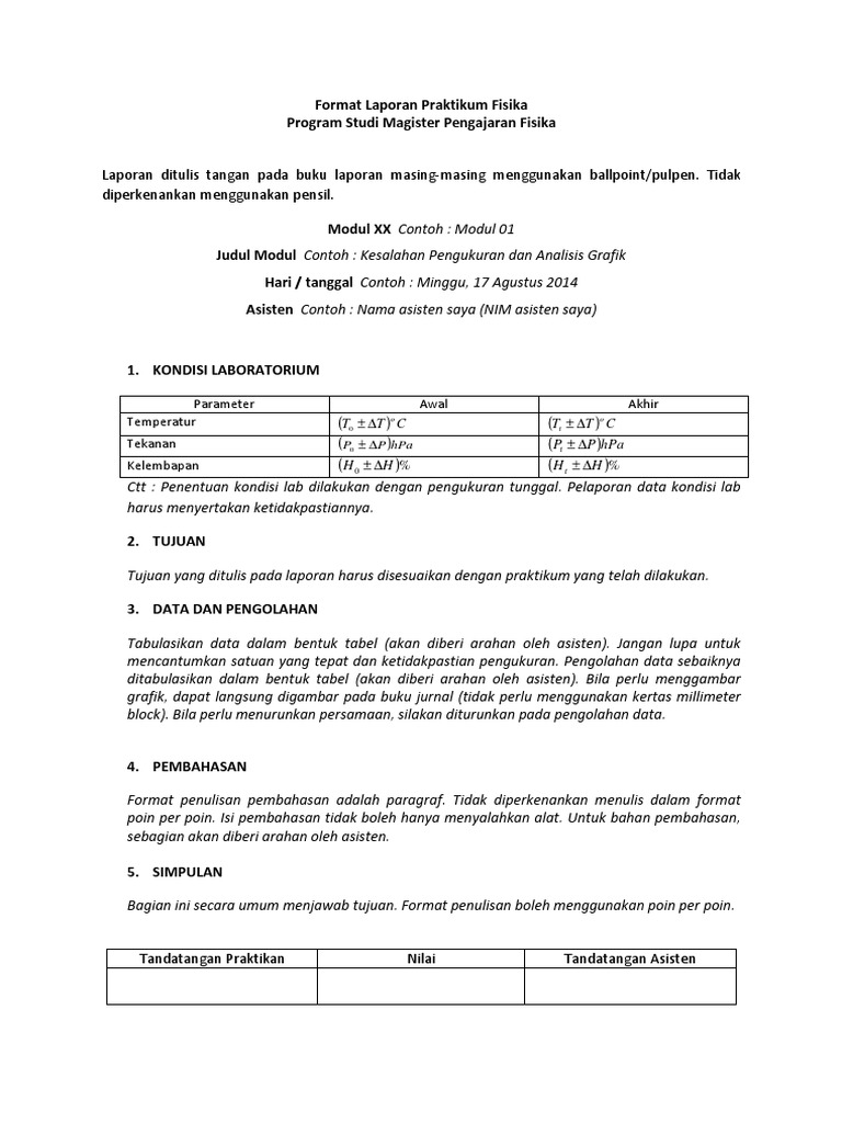 Contoh Laporan Praktikum Fisika Dasar Untuk Tugas Sekolah Terbaik