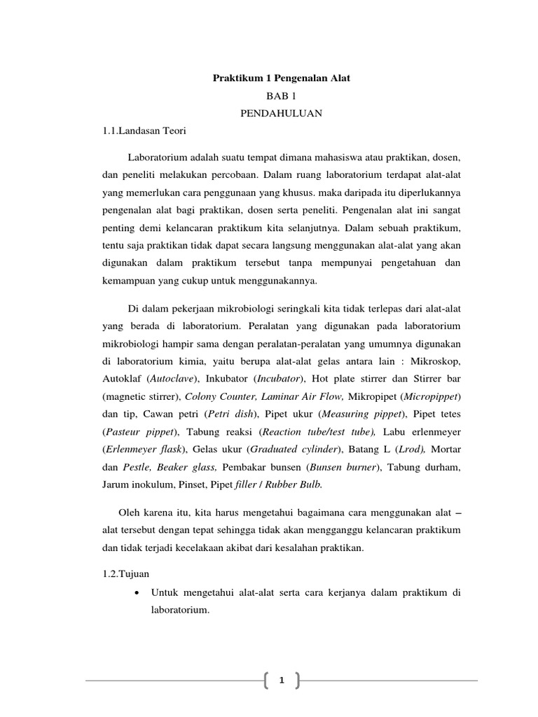 Percobaan 1 Pengenalan Alat Alat Laboratorium