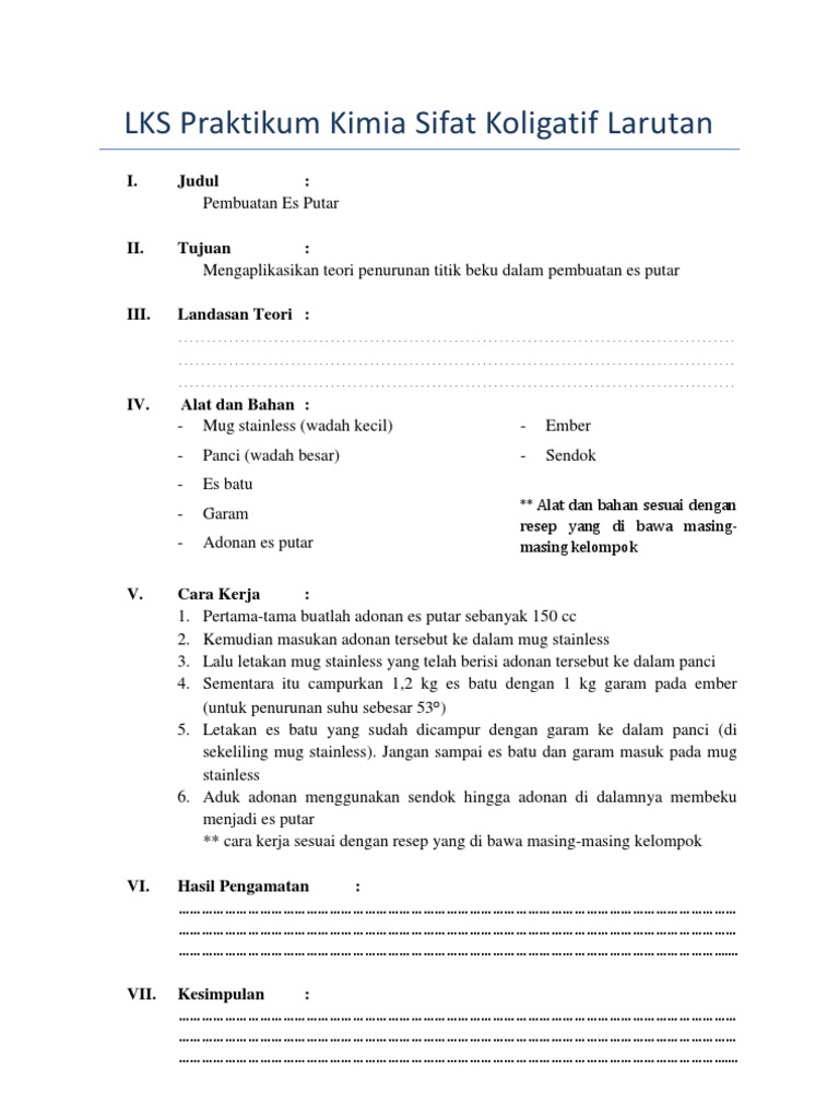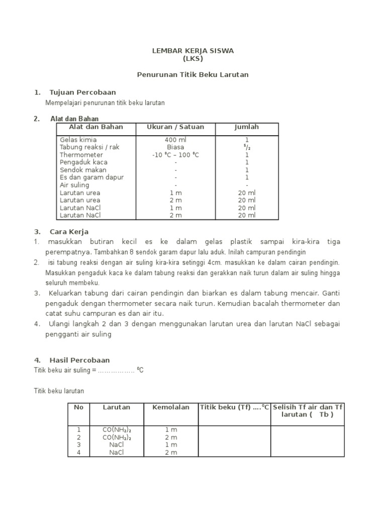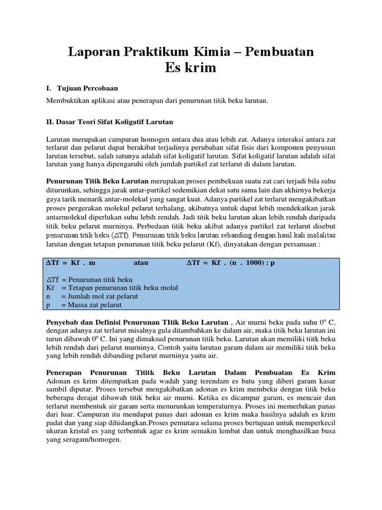 Contoh Laporan Praktikum Sifat Koligatif Larutan Kumpulan Contoh Laporan