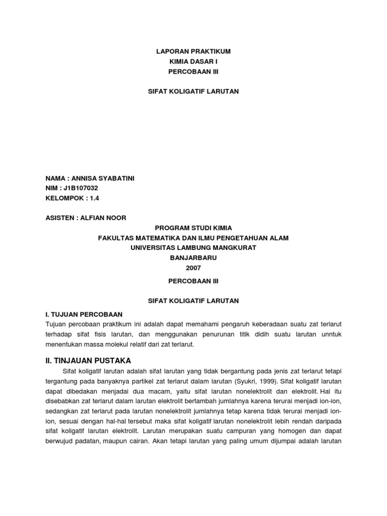 Doc Laporan Praktikum Sifat Koligatif Larutan Alief N U Academia Edu