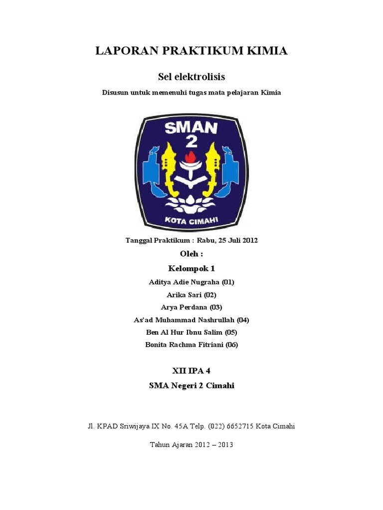 Doc Laporan Praktikum Kimia Reaksi Elektrolisis Disusun Oleh Sma Negeri 1 Kebumen Dhia Amalina Hanifa Academia Edu