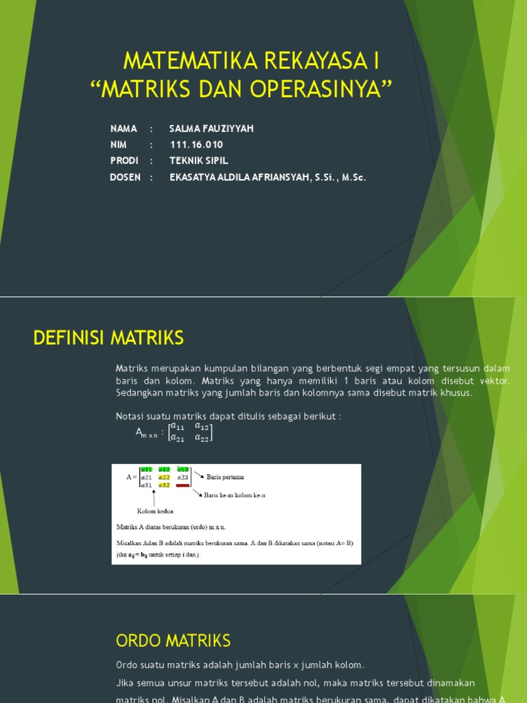 Matematika Rekayasa I Matriks Dan Operasinya